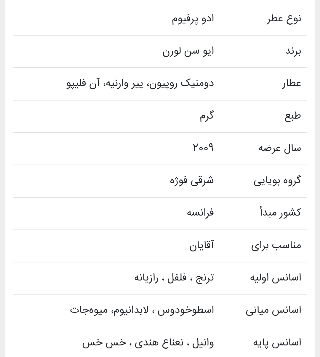 بیشترین طرفداری و جذابیت آن در رایحه بسیار تک و خاص آن و همچنین تبعیت از ماندگاری بالا و دلربای دیگر محصولات این شرکت میباشد.