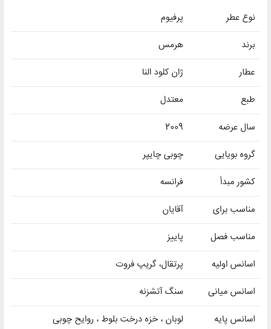 رایحه ای واقعا استثنائی و به معنای کلمه خاص که میتواند روح آسمان را به زمین پیوند بزند، عطری کاملا تک مخصوص همه سلیقه هایی که تا بحال بدنبال محصولی منحصر بفرد، عالی، ماندگارو بسیار شیک بودند، روح جوانی و آزادی و عشق را با تمام وجود به روح انسان پیوند میزند این عطر کاملا خارق العاده نسخه پرفیوم (درصد الکل بسیار پایین) از شرکت هرمس میباشد که در سال 2008 وارد بازار شد.