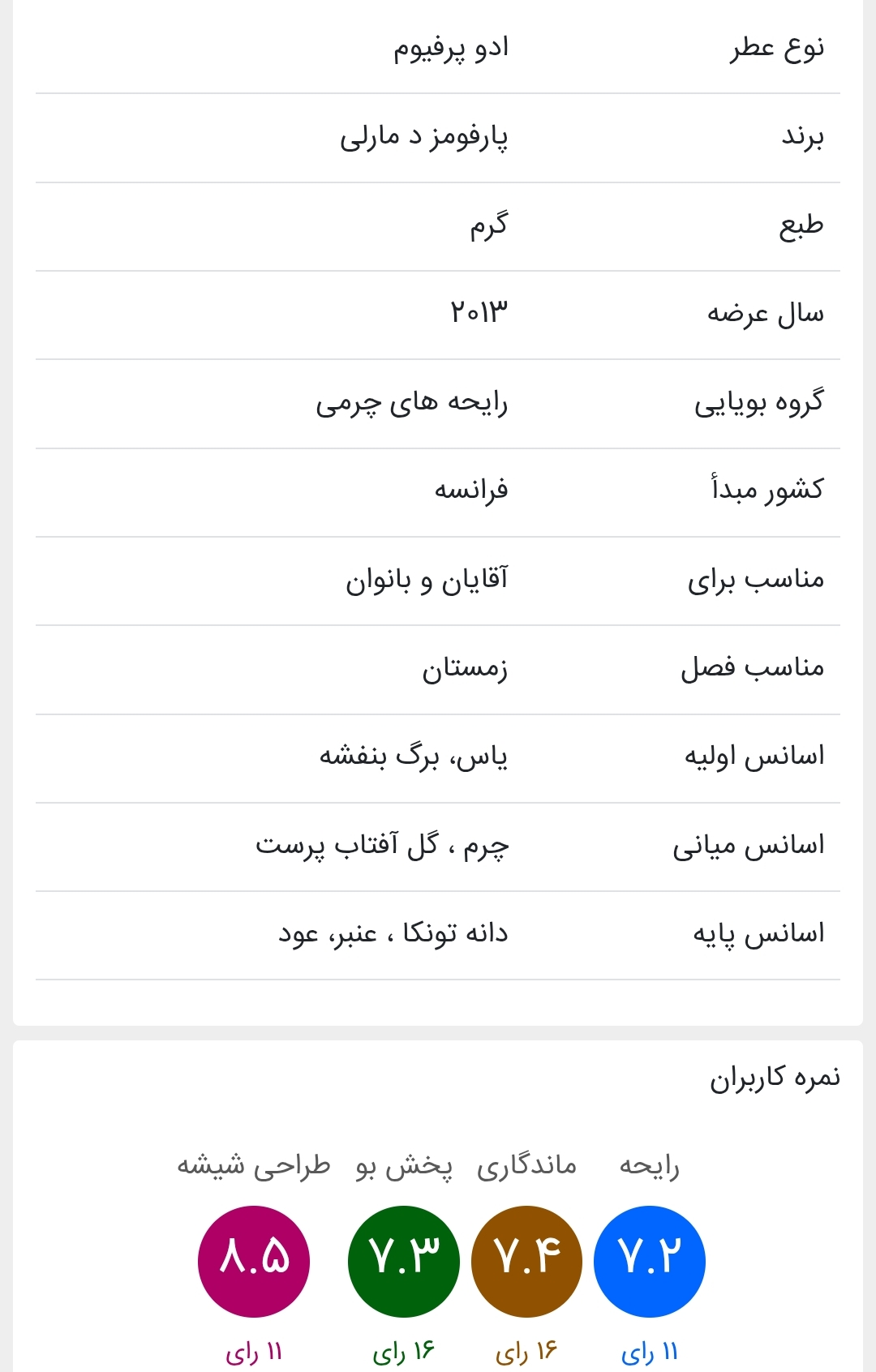 کوهویان محصول سال 2013 خانه ادکلن سازی پارفومز د مارلی