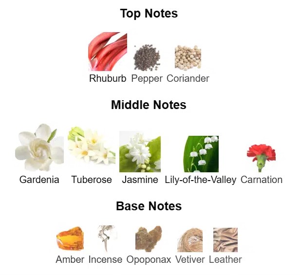 رایحه پایه : عنبر – چرم – خس خس – بخور خوشبو – اپوپونوکس