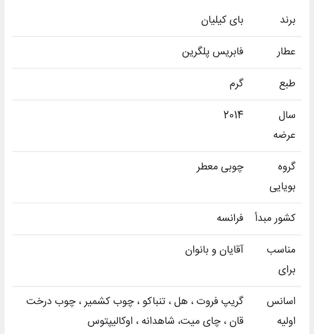 محصول سال 2014 می باشد و در گروه بویایی چوبی معطر که عطرهای بسیار جذابی را در خود جای داده است، قرار دارد. سبک بویی این عطر گرم می باشد و عطار آن فابریس پلگرین می باشد . از اسانس های بکار برده شده در این عطر می توان به گریپ فروت ، هل ، تنباکو ، چوب کشمیر ، چوب درخت قان ، چای میت، شاهدانه ، اوکالیپتوس اشاره کرد.