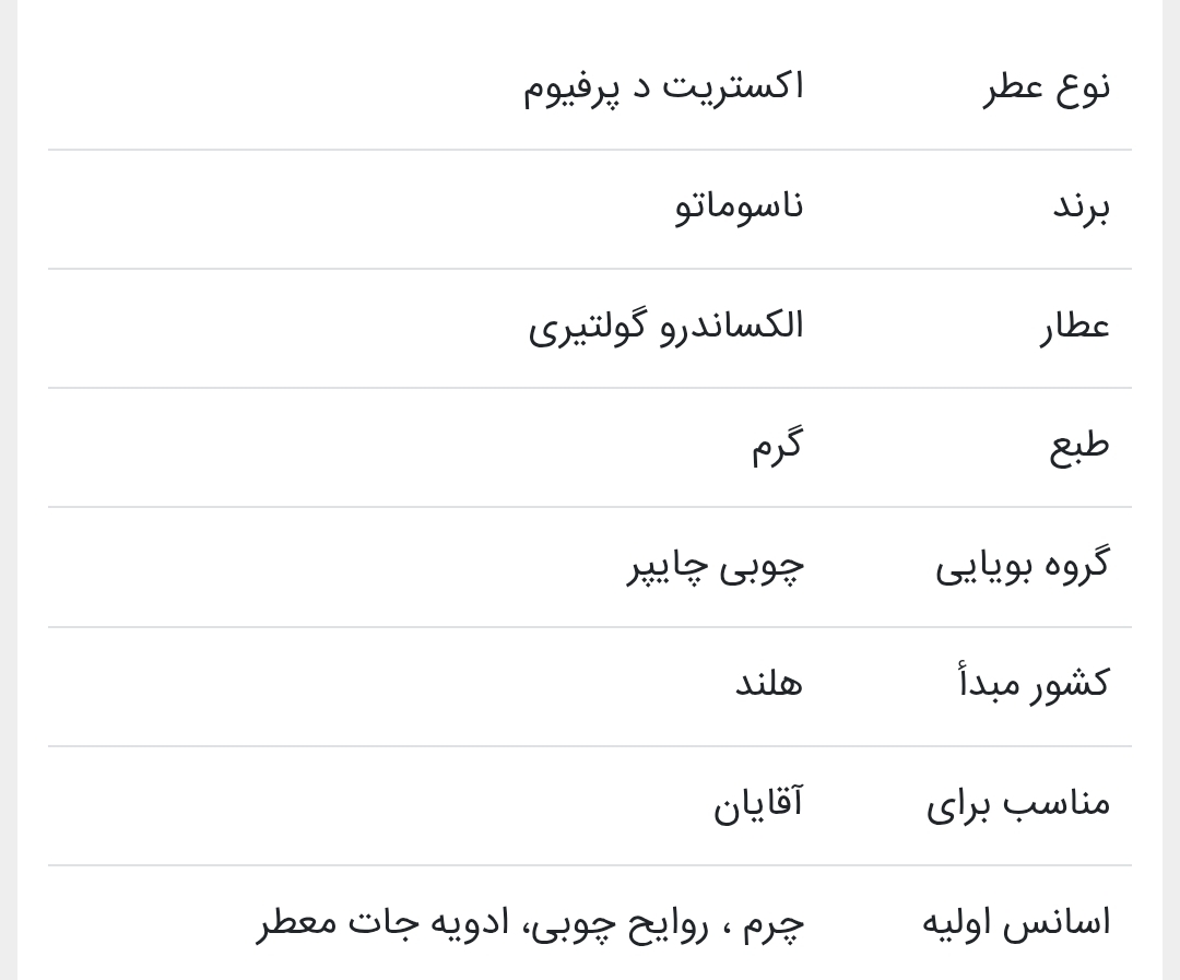 ناسوماتو دورو، از رایحهای بسیار مردانه لذت ببرید. این عطر واقعا ویژگیهای قدرت مردانه را در خود خلاصه میکند. به محض اولین استفاده پسرایحه خود را بر جای میگذارد. کمی که به تنتان نشست، آکوردهای چوبی و تند خود را نشان میدهد. این پرفیوم در سال 2007 عرضه شد.