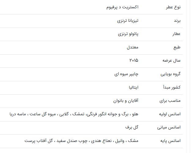 این عطری جادویی و حسی است، گویا الهام گرفته از الهه است. مجموعهای شاداب از میوههای شیرین از جمله میوه گل ساعتی، هلو و گلابی که با ترکیبی ماهرانه با تمشک و برگ و جوانه انگور فرنگی سیاه آمیخته شده است.